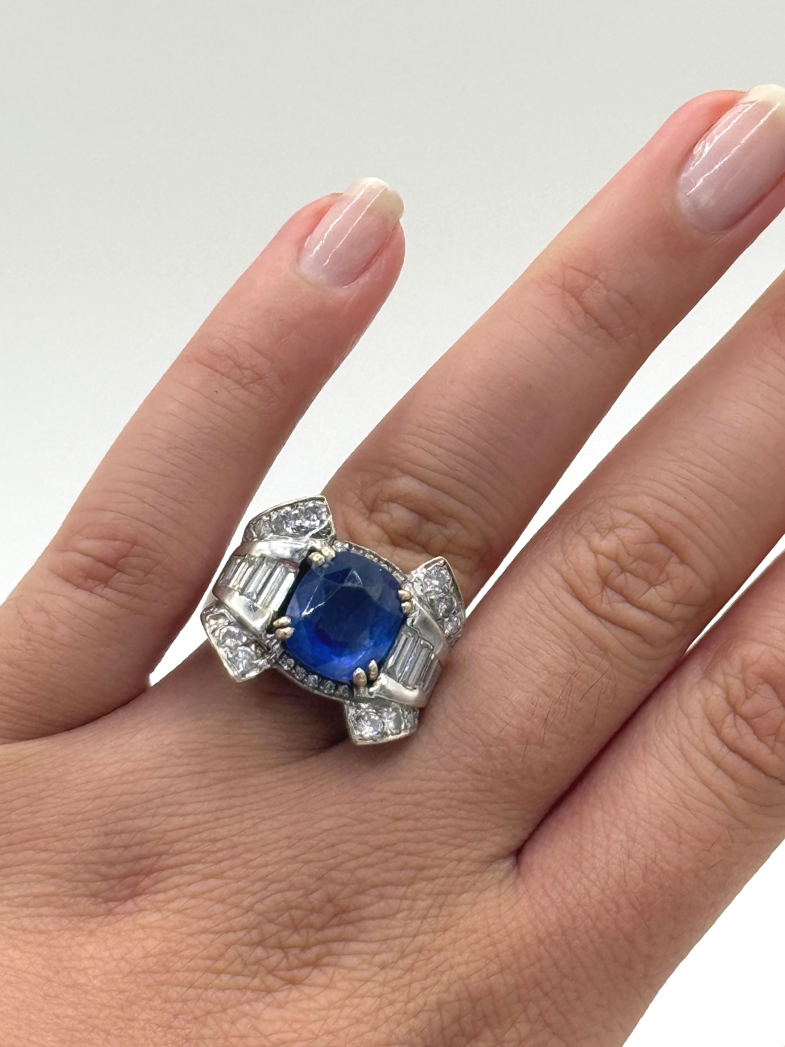 Poids du saphir : 4,2 cts environ Tour de doigt : 54. Poids brut : 14,40 g.