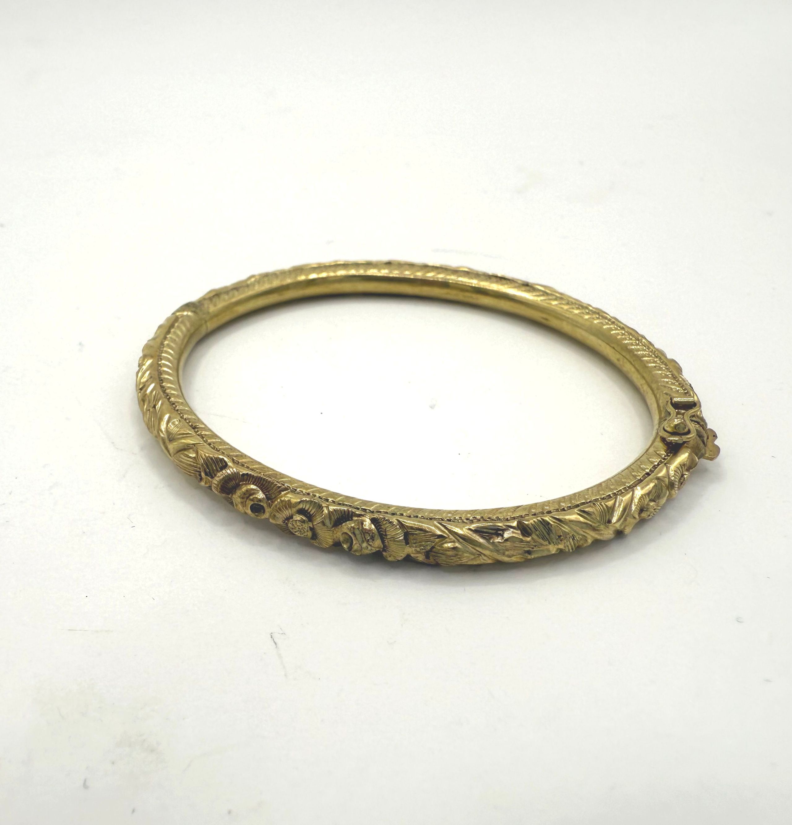 Bracelet d’enfant en or jaune (375 millièmes)  rigide et ouvrant à décor cisellé. - Lazuli