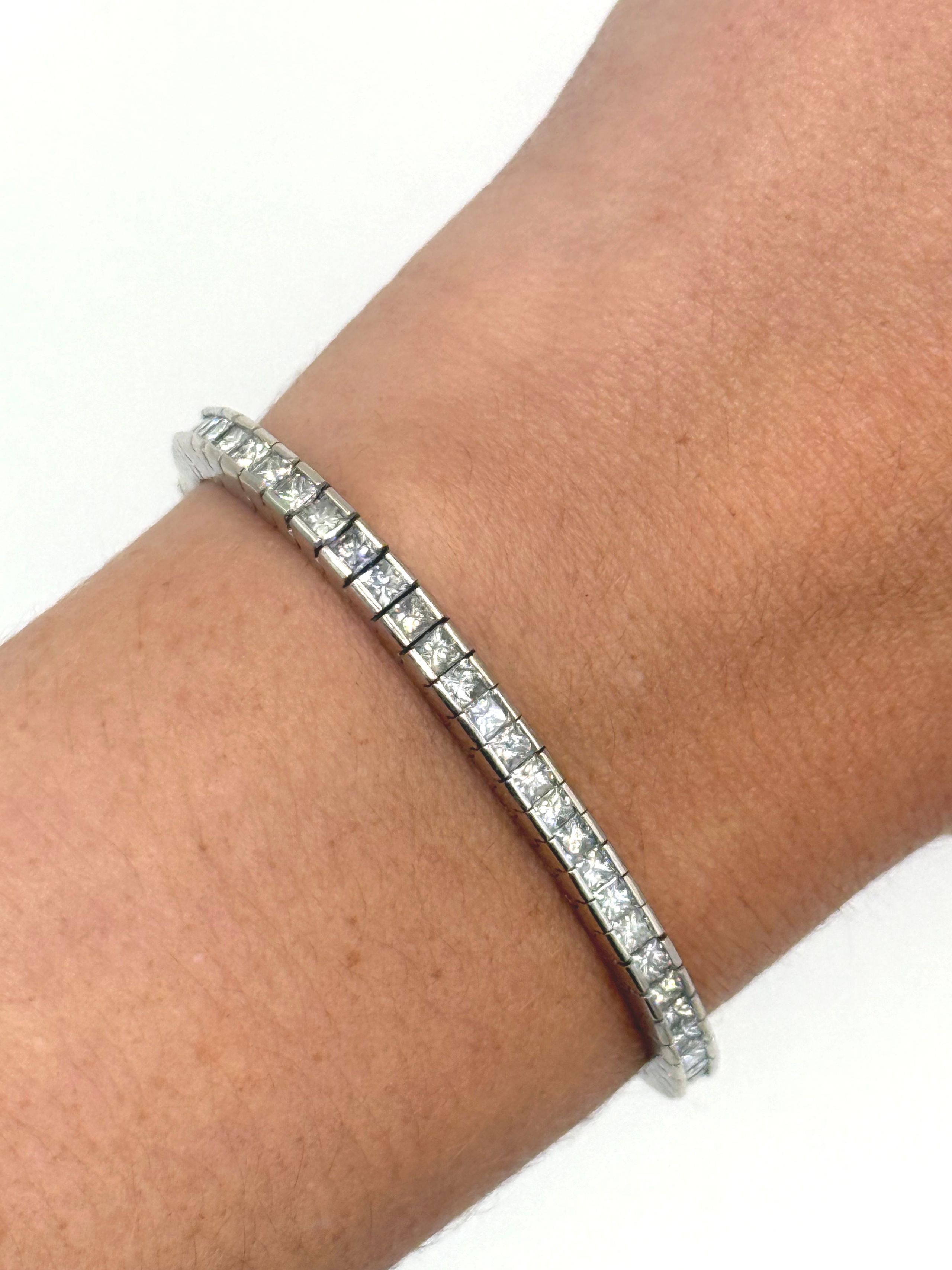 65 - Bracelet rivière en or gris (750 millièmes) orné de soixante-douze diamants taille princesse.