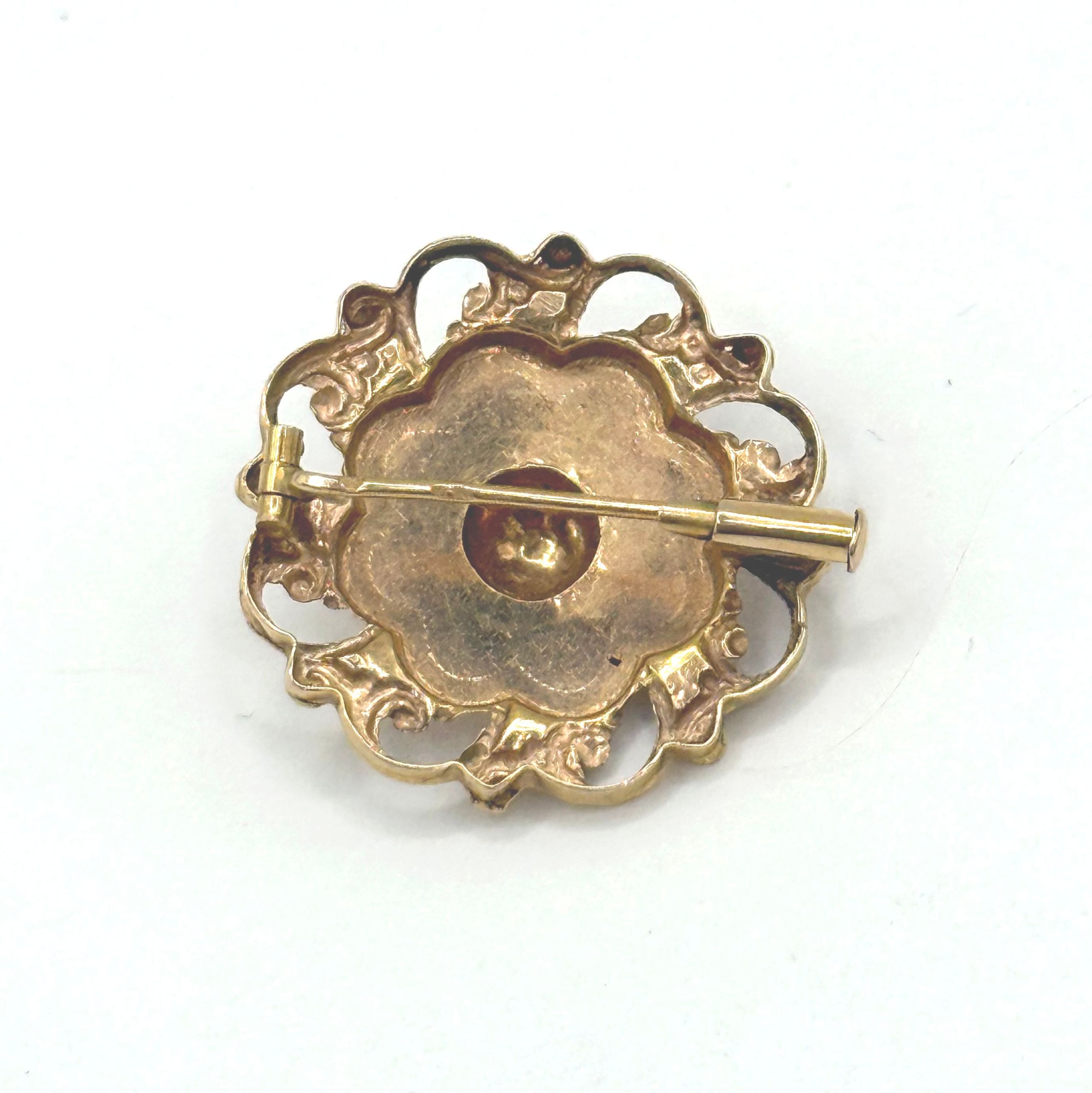 316 - Broche ronde ajourée en or jaune (750 millièmes) à décor ciselé.