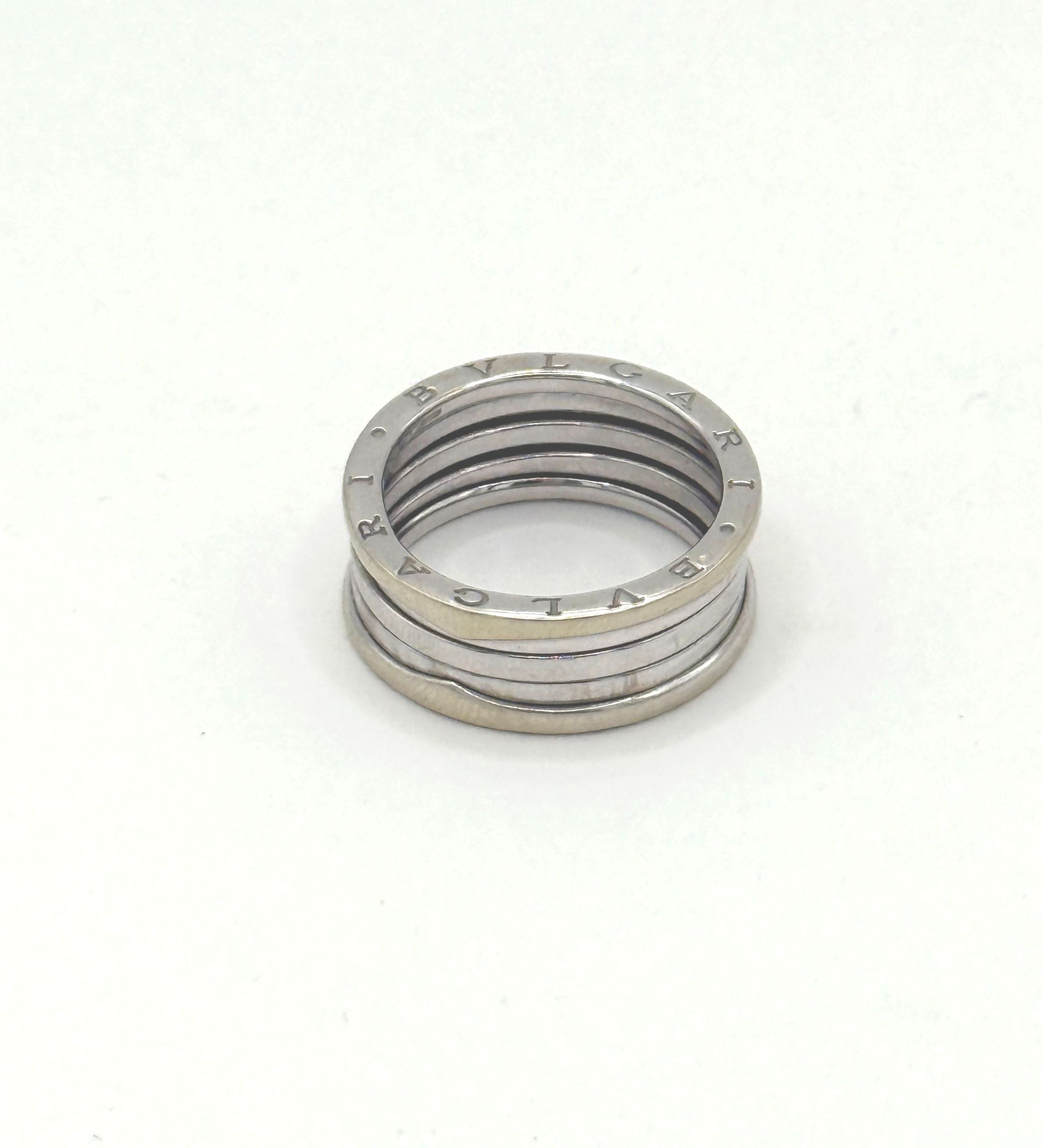 146 - BULGARI Bague B.Zero 1 en or gris (750 millièmes), spiralée et flanquée du nom de la maison.