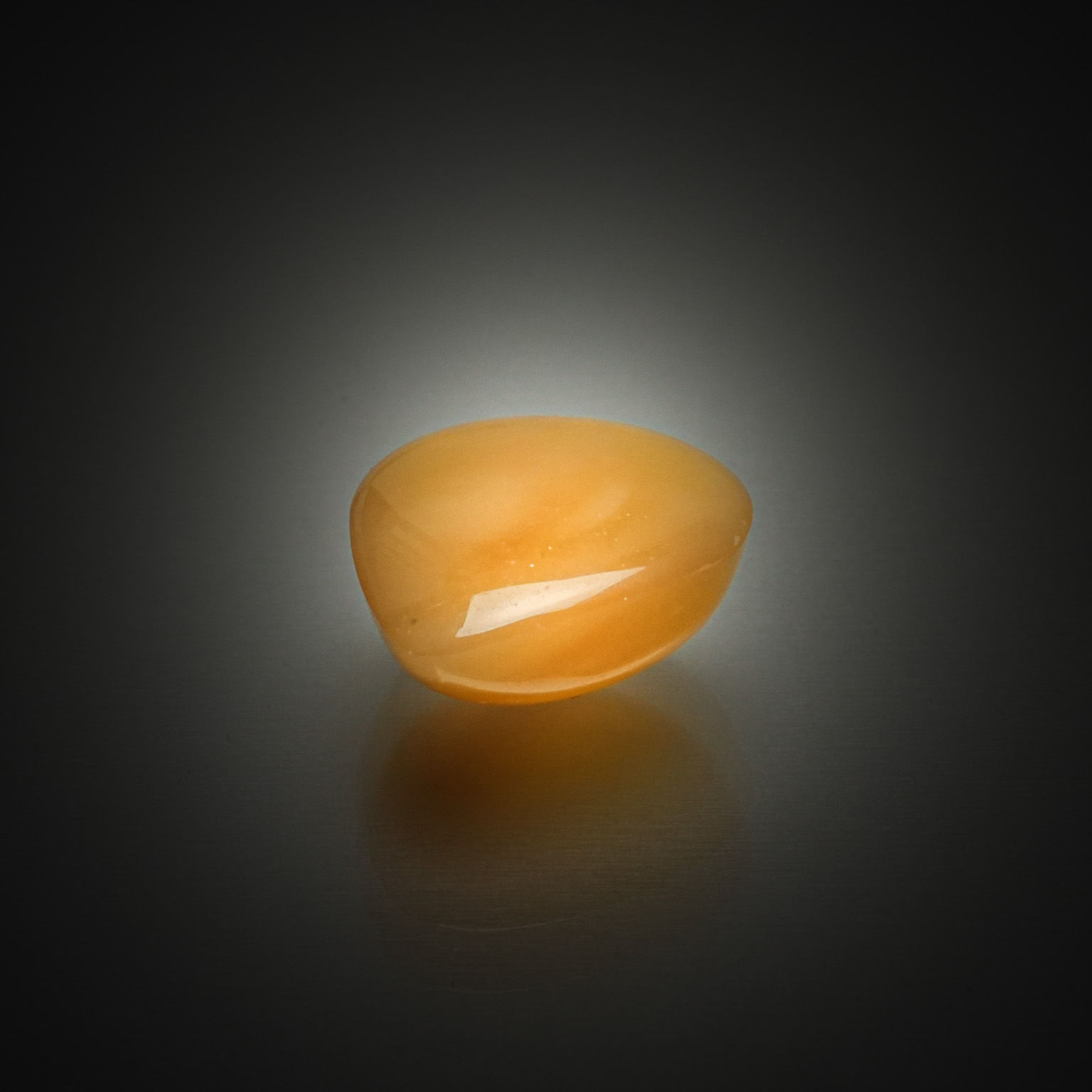 Calcédoine jaune ovale cabochon sur papier. - Lazuli