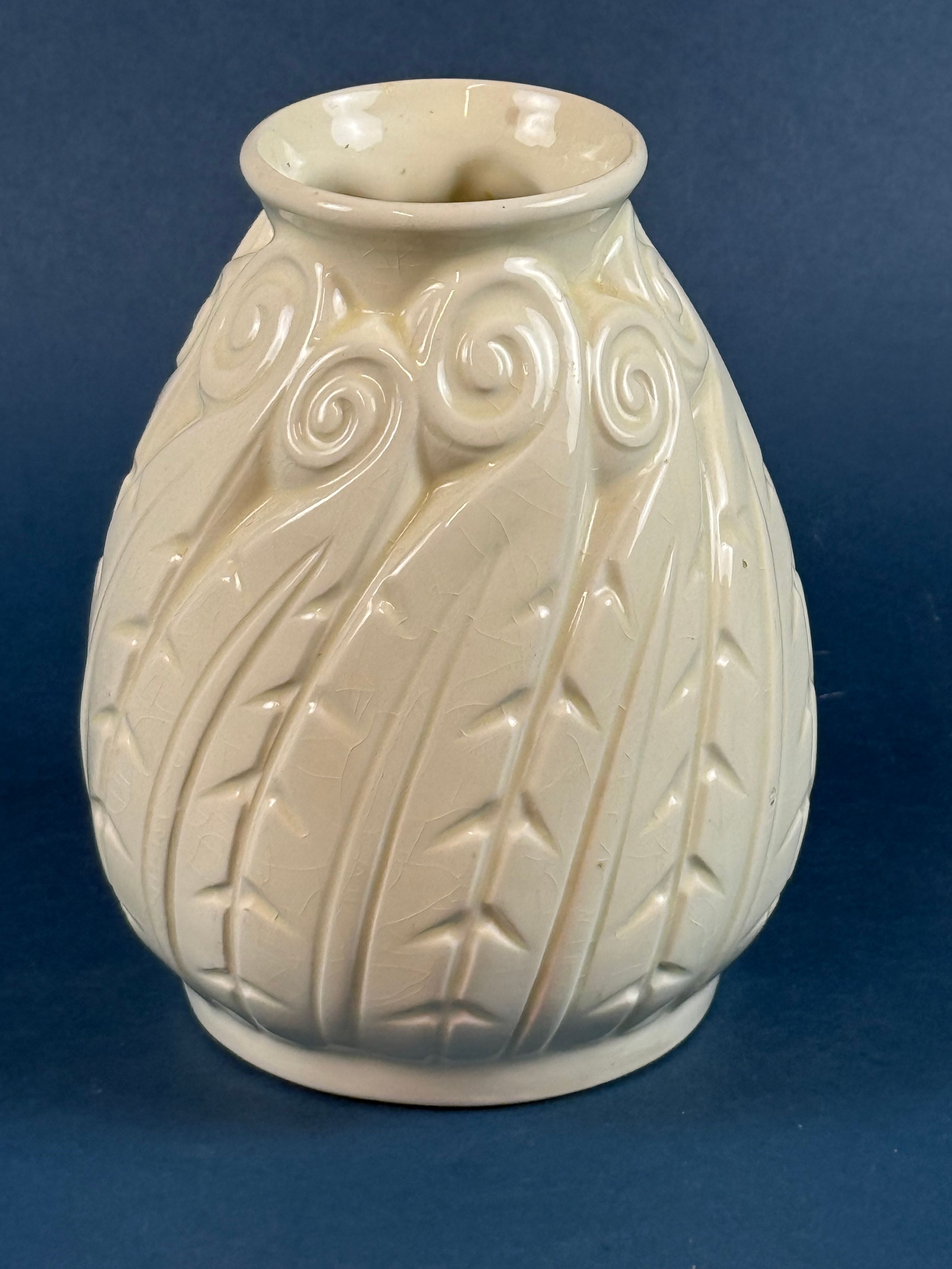 Vase ovoïde en céramique à décor floral Marque sous la base H. 20 cm Diam. de la base 12,5 cm