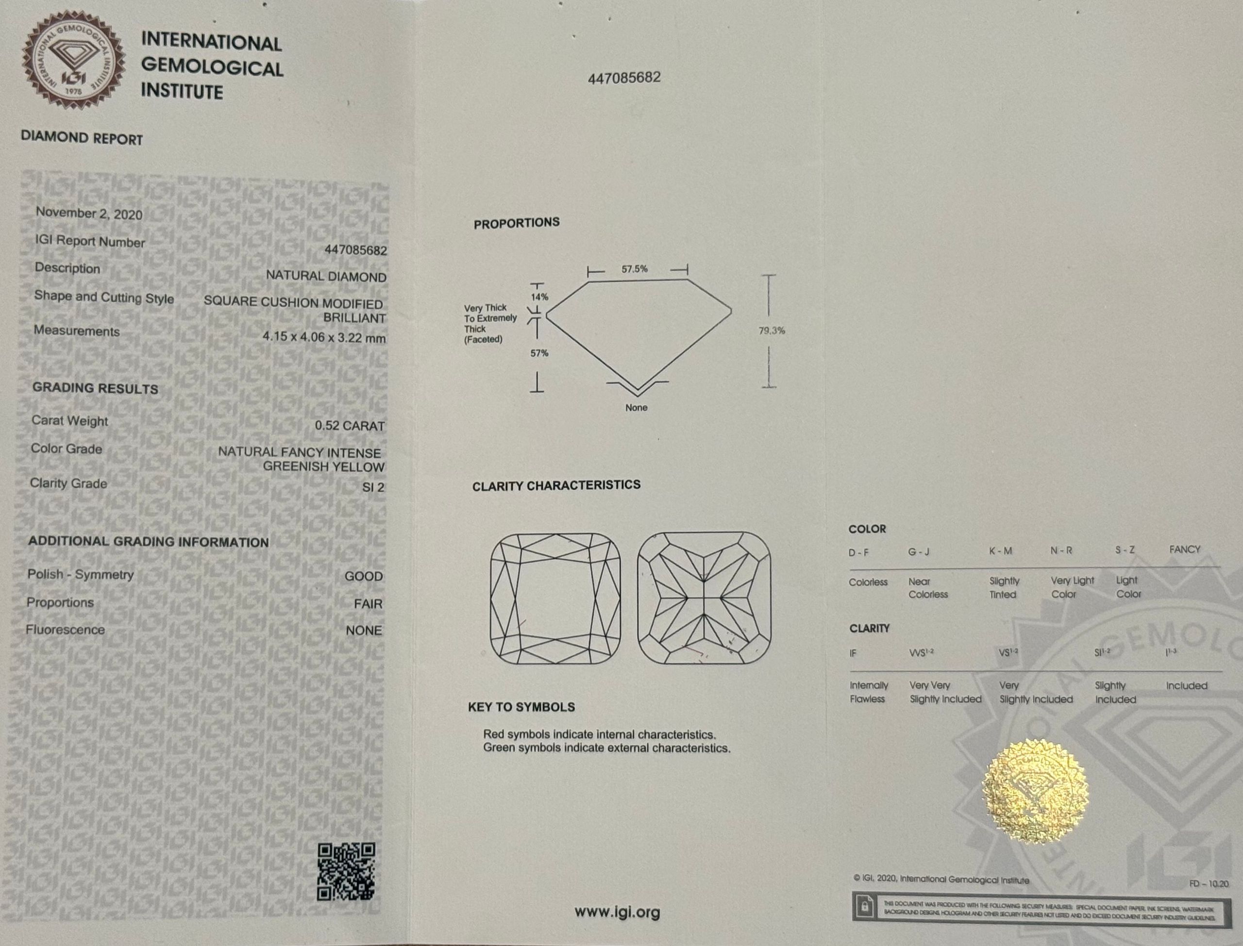 Le diamant principal accompagné d'un rapport d'analyse de l'International Gemological Institute datant du 2 novembre 2020 indiquant :