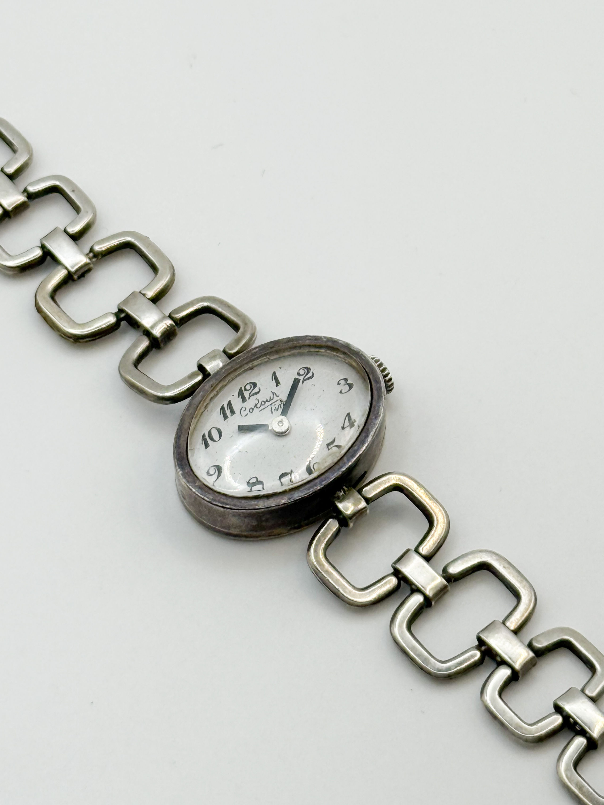 Montre bracelet à boitier rond en argent (800 millièmes).