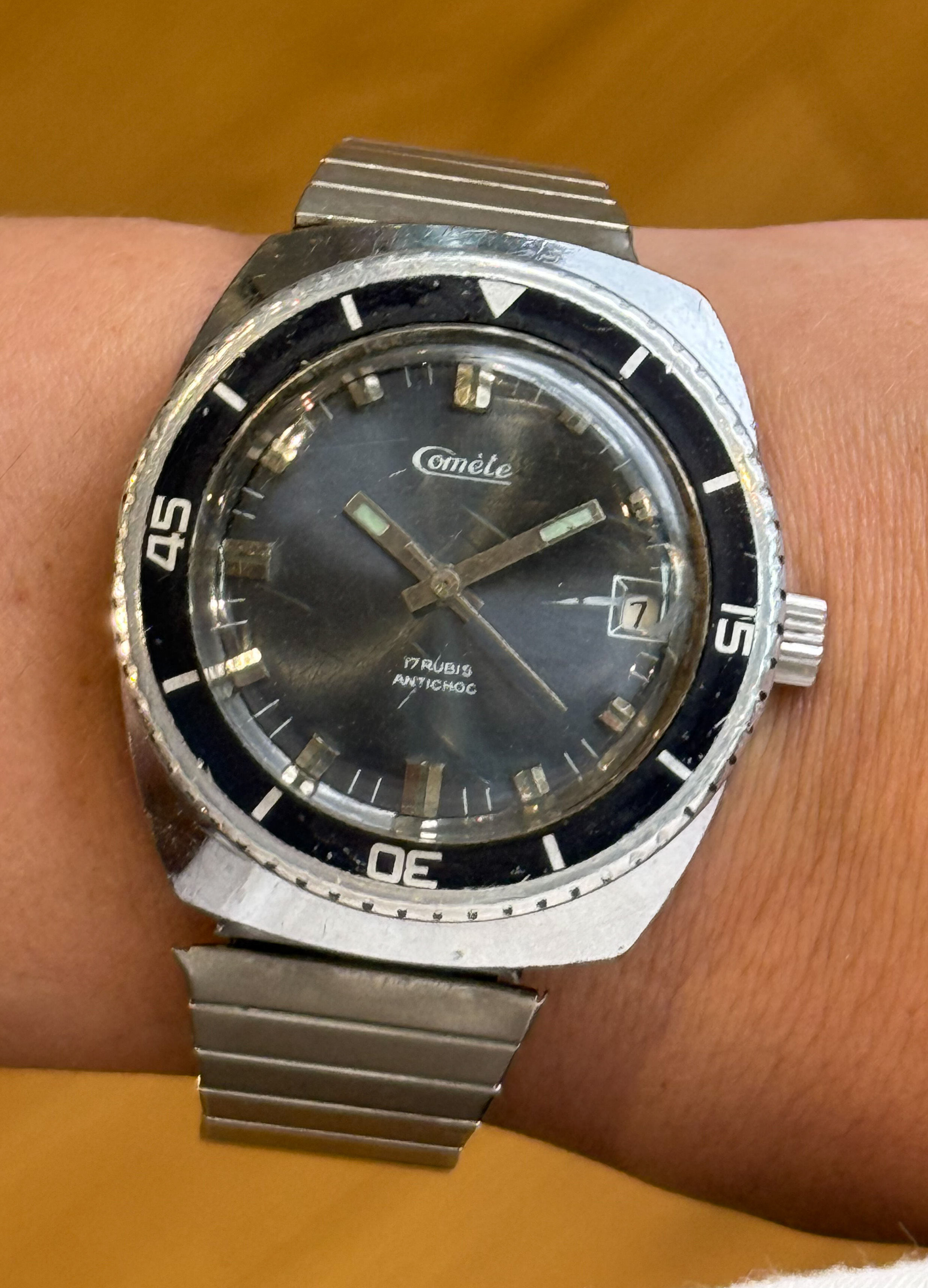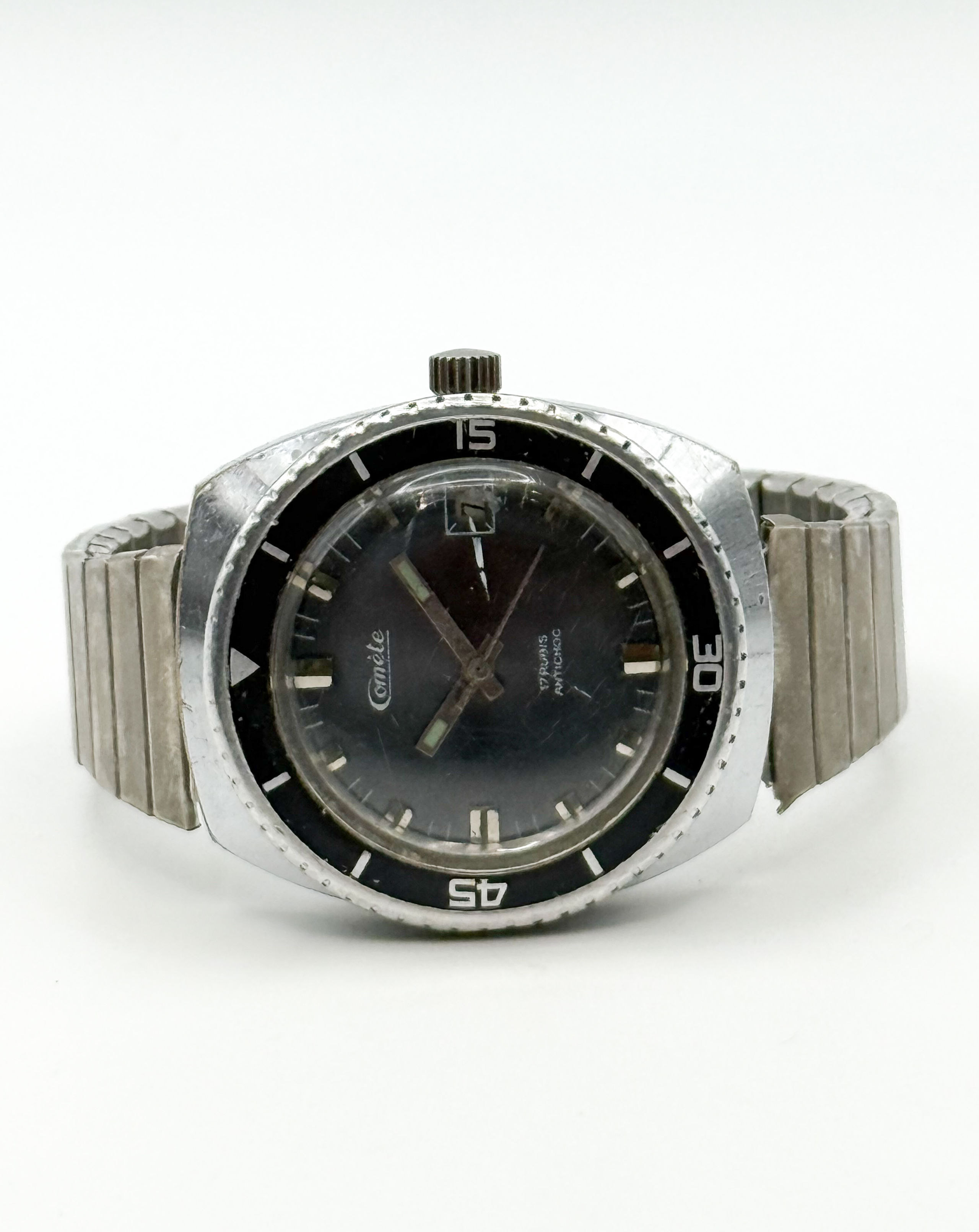 Cadran à fond noir et index bâtons.