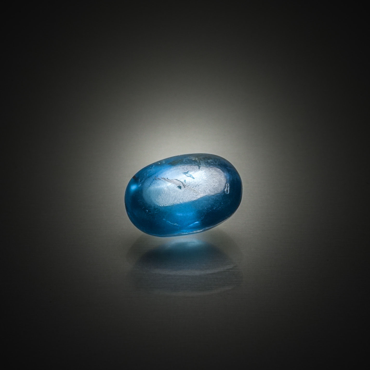 Cyanite ovale cabochon sur papier. - Lazuli