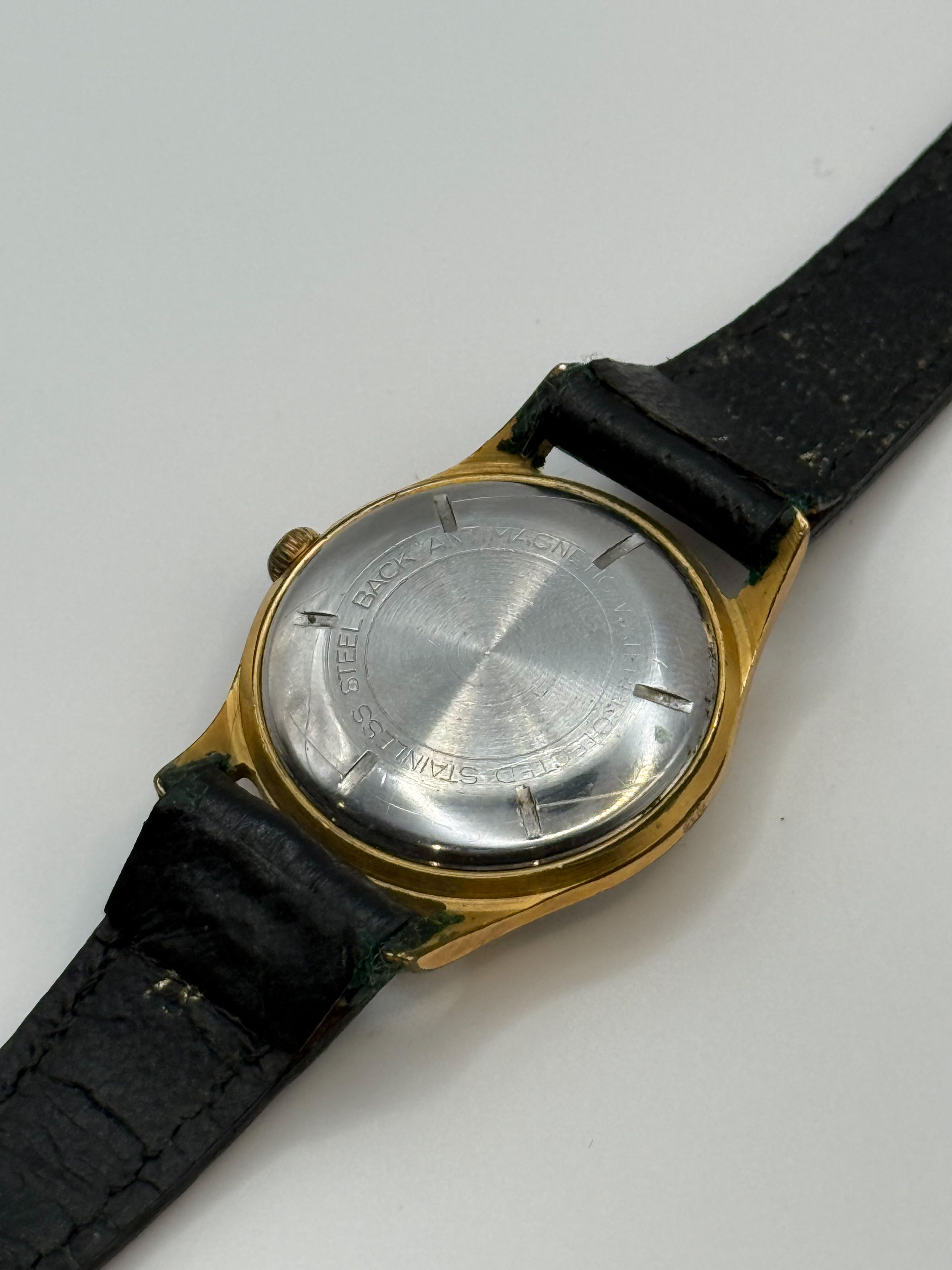Montre bracelet, boitier rond en métal doré.