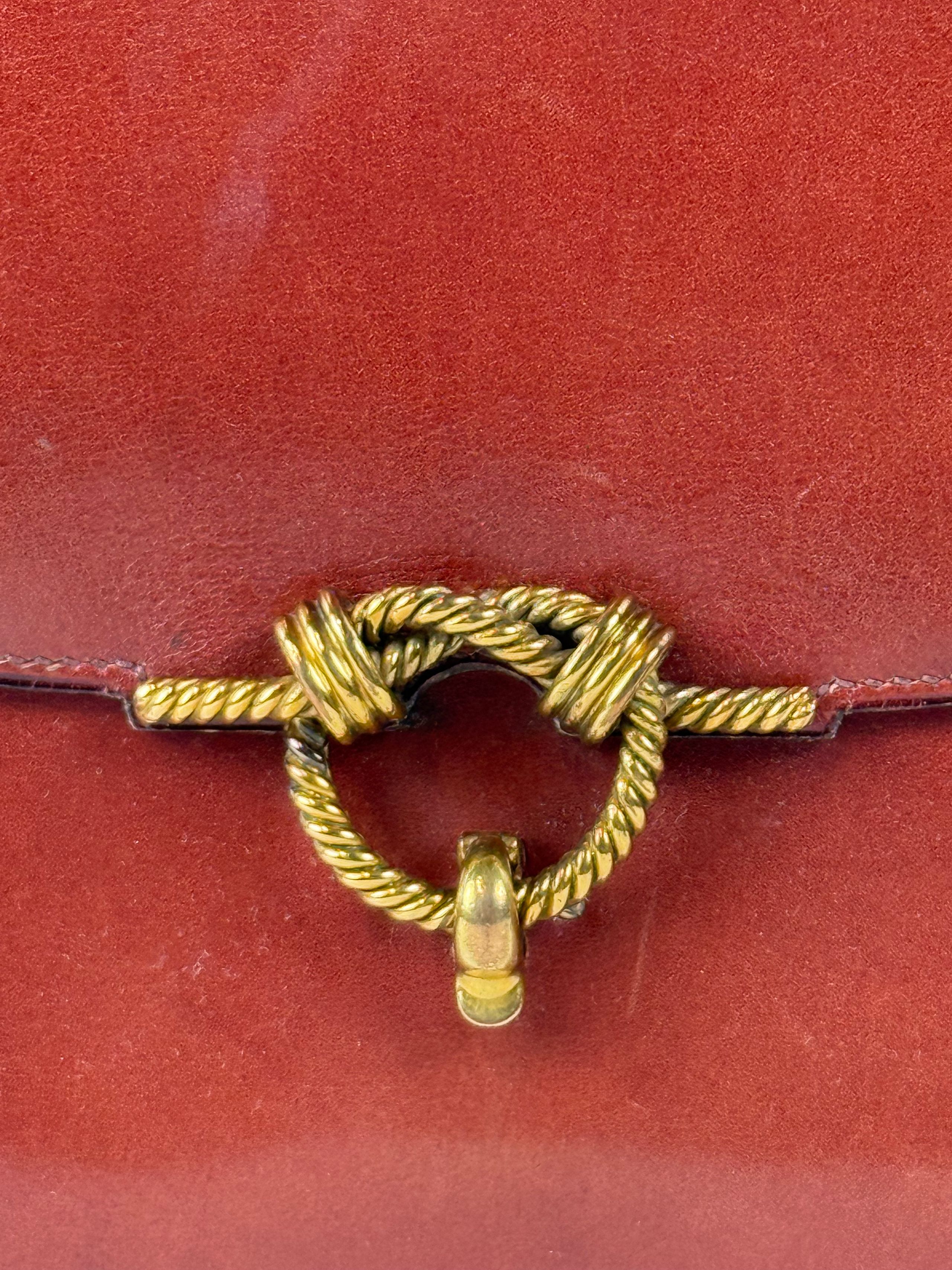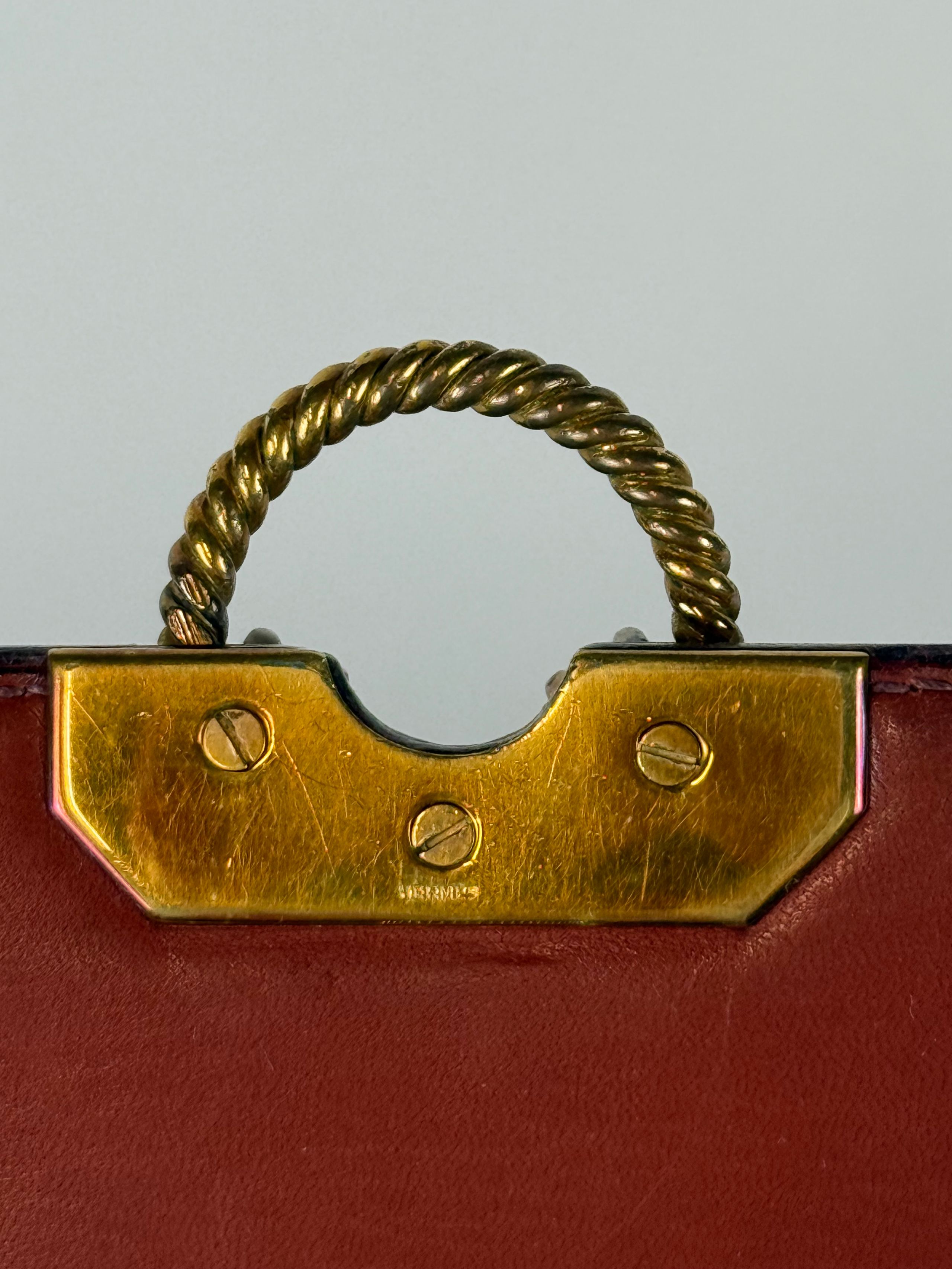 Sac Cordelière en box châtaigne, Garnitures torsadées en métal plaqué or (17,5 x 28 x 5 cm) Etat d’usage correct . (petites rayures et marques d'usage, teinte légère) Expert : Madame Martine Lecamus.