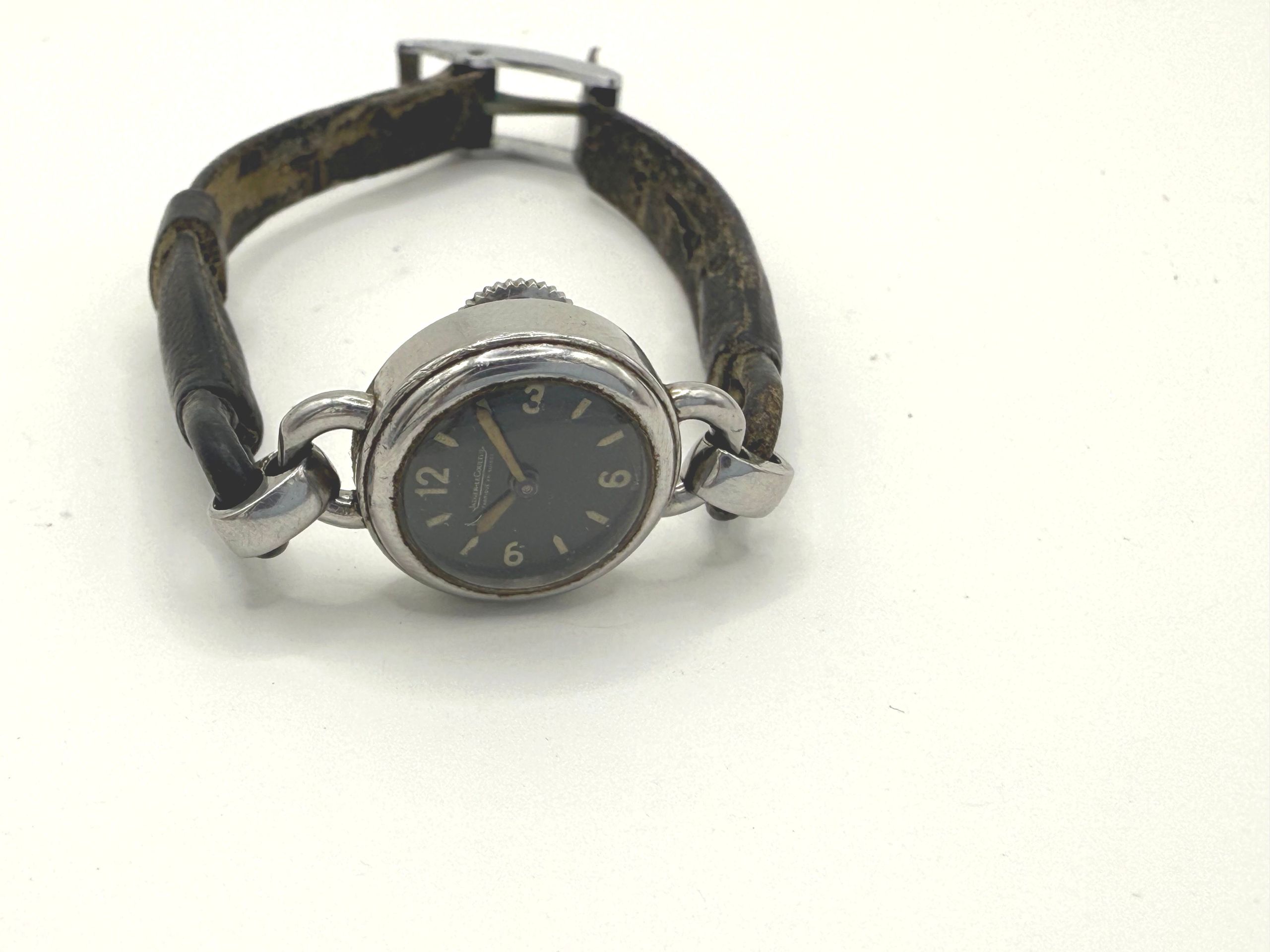 Bracelet en cuir noir et boucle ardillon apocryphe.