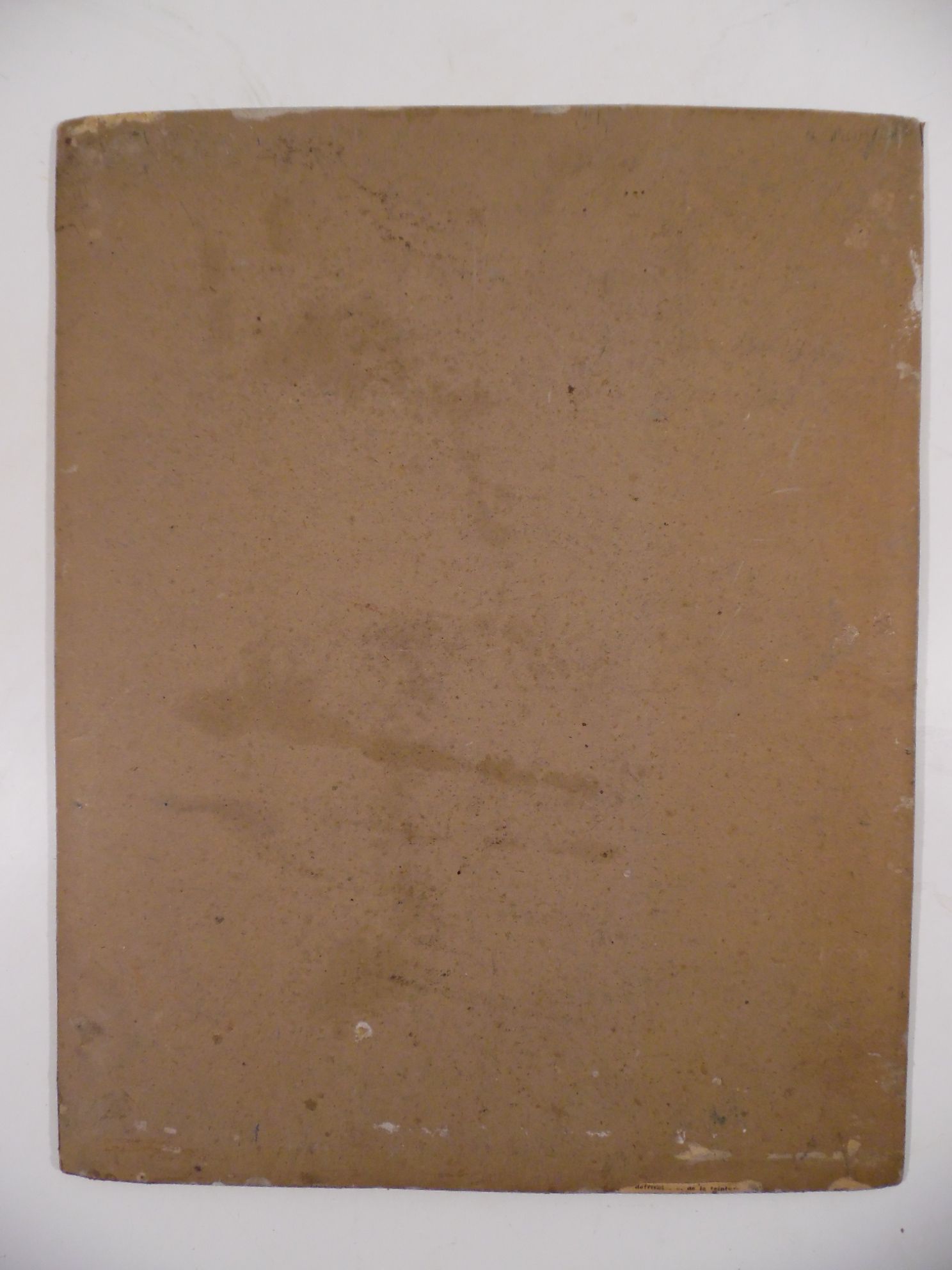 Nature morte à l'assiette, coupe et bouteille. Huile sur isorel. 45,5 x 38 cm.