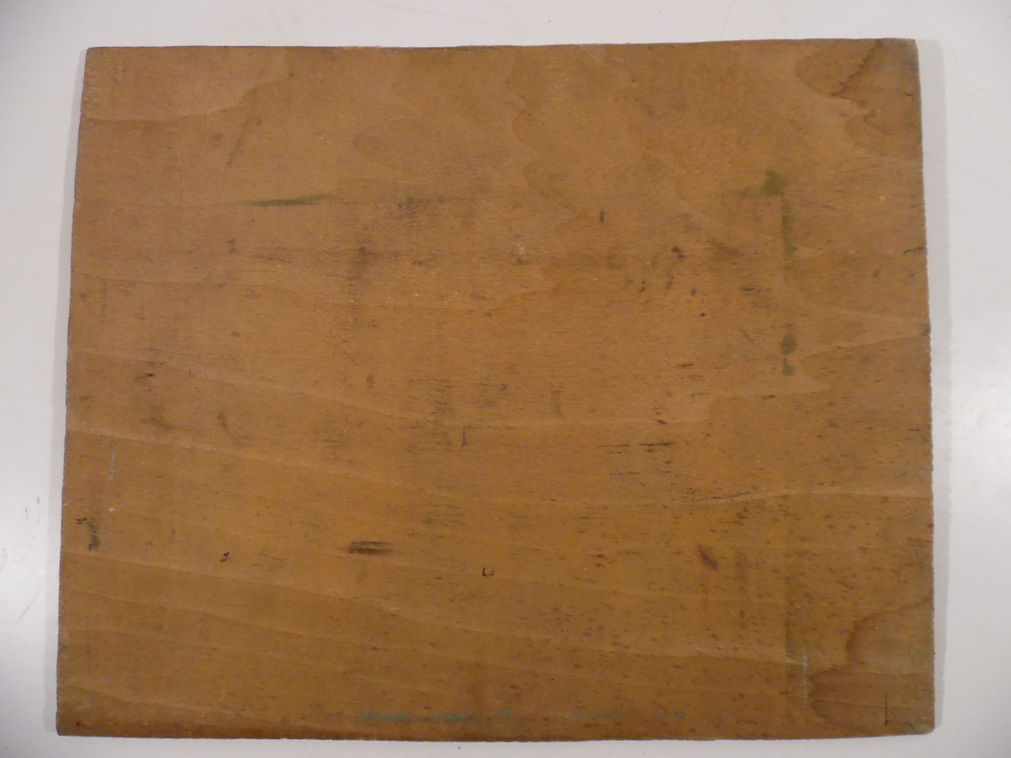 Maisons. Huile sur isorel signée au dos et datée 1954. 54,5 x 46 cm.