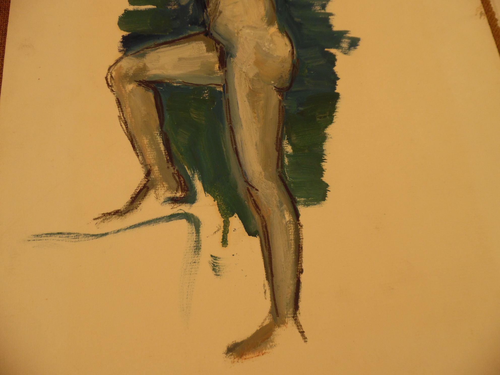 Nu féminin. Huile sur papier. 50 x 32,5 cm.