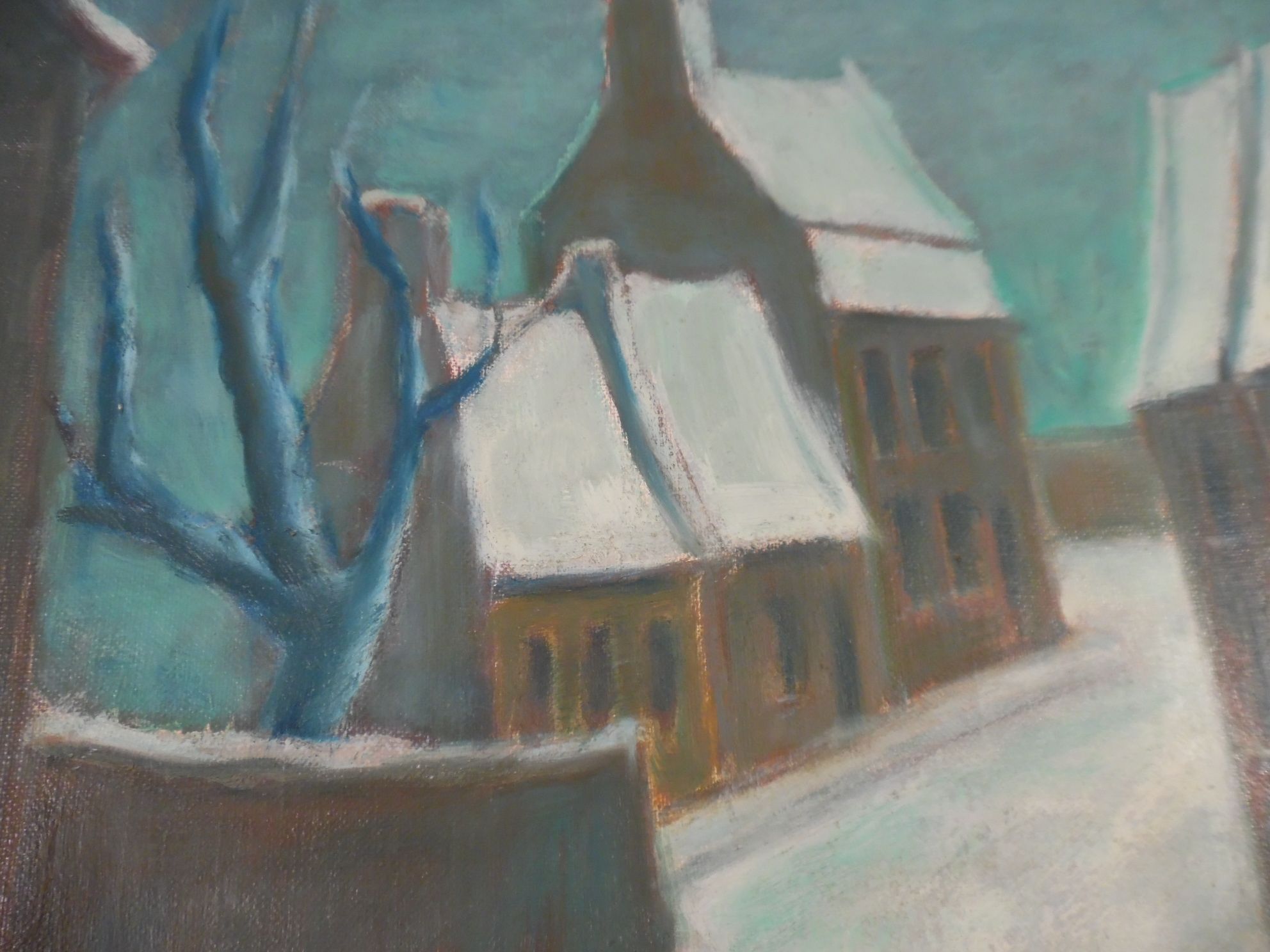 Rue sous la neige. Huile sur toile. 38 x 46 cm.