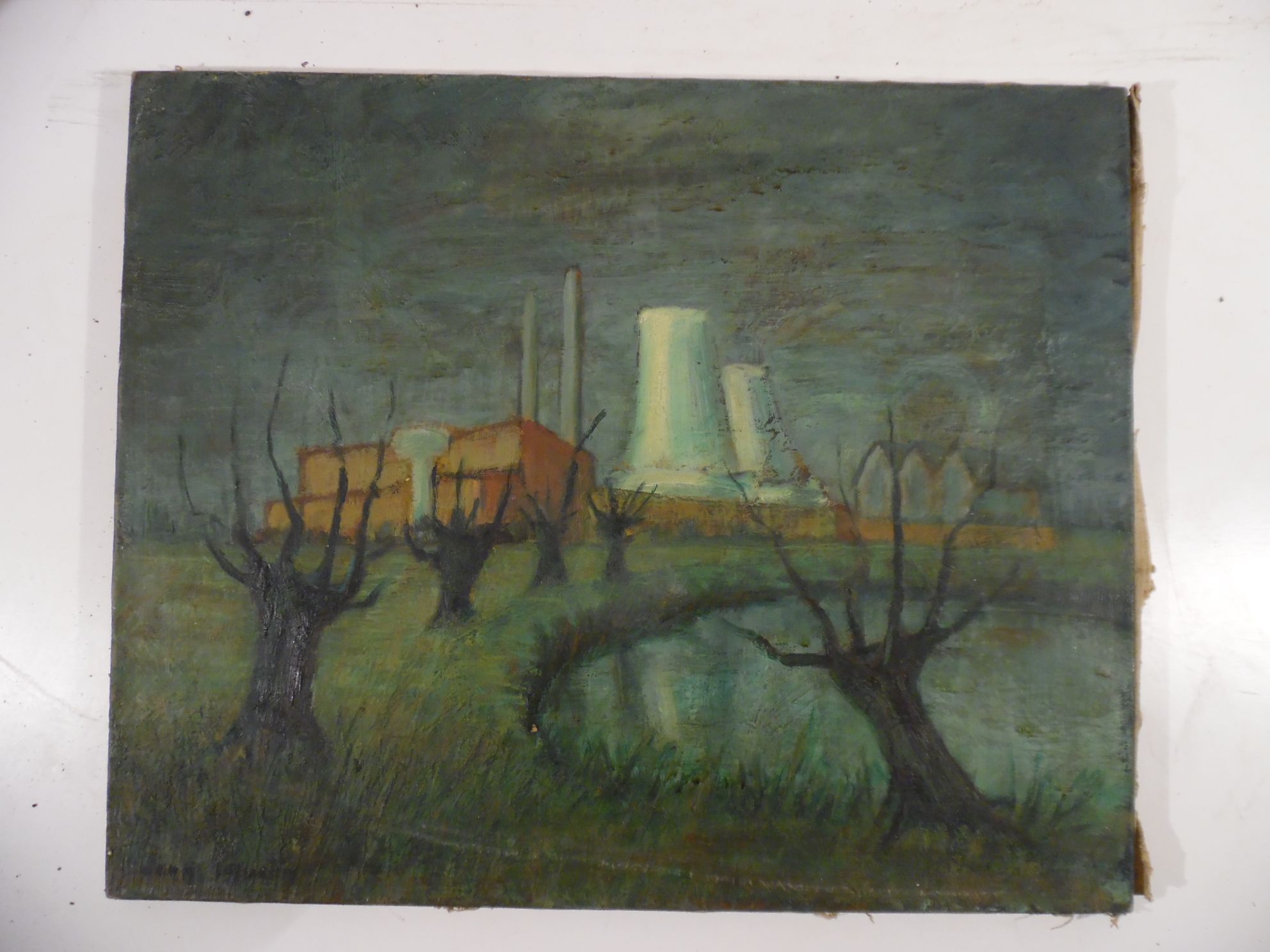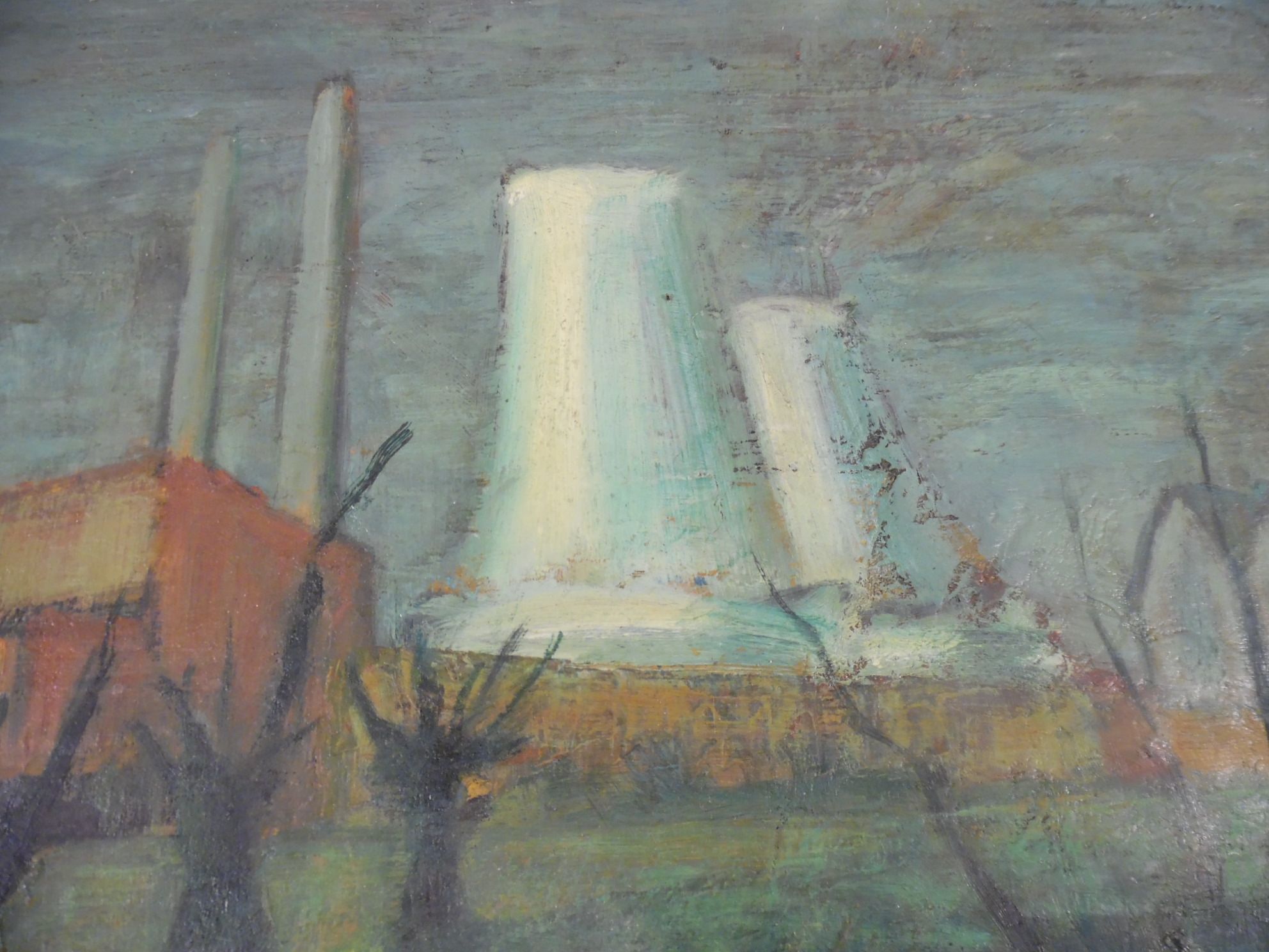 La centrale. Huile sur toile signée en bas à gauche. 50 x 61 cm.