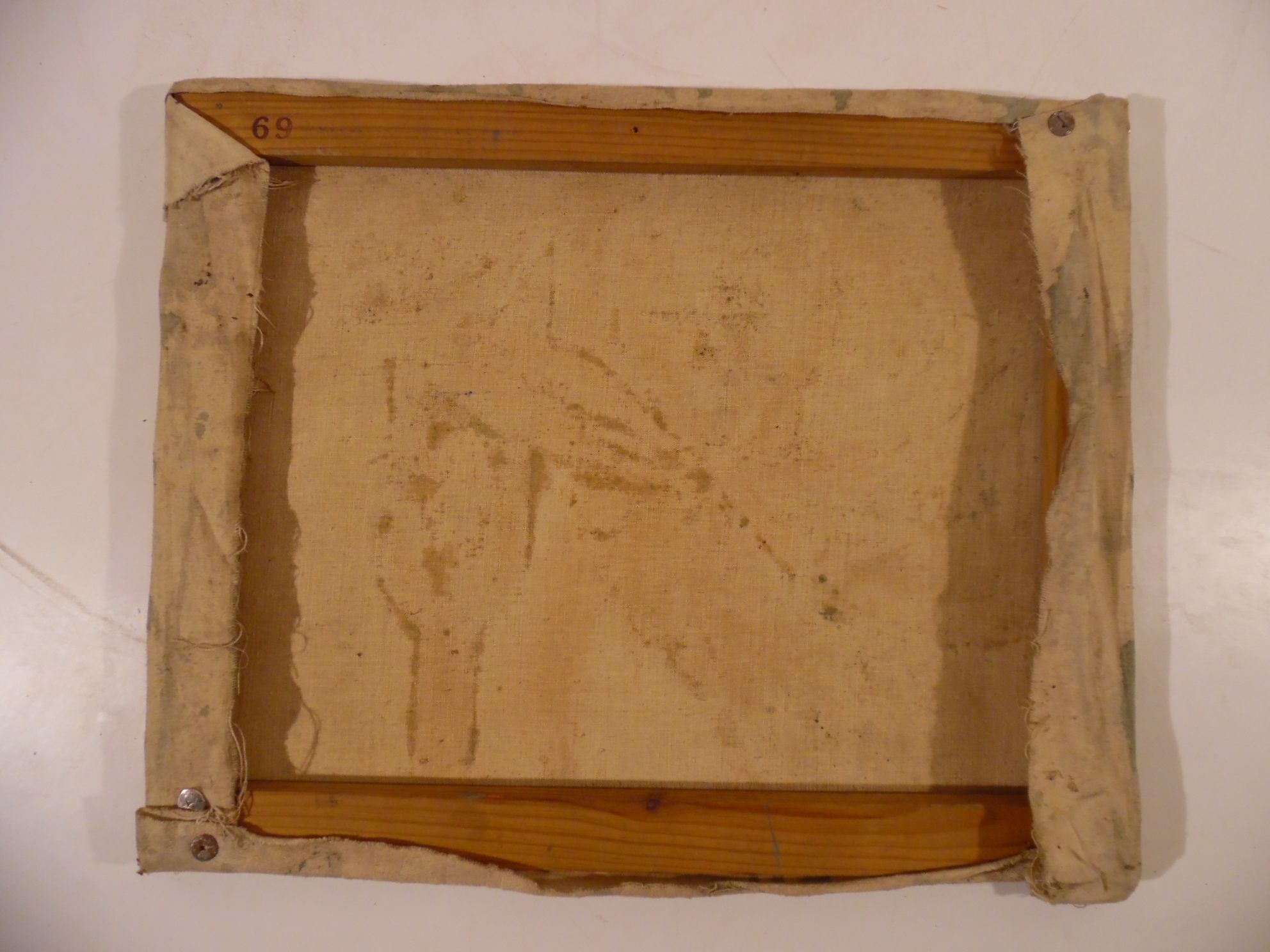 Peintres dans l'atelier. Huile sur isorel signée en haut à gauche. 61 x 50 cm.