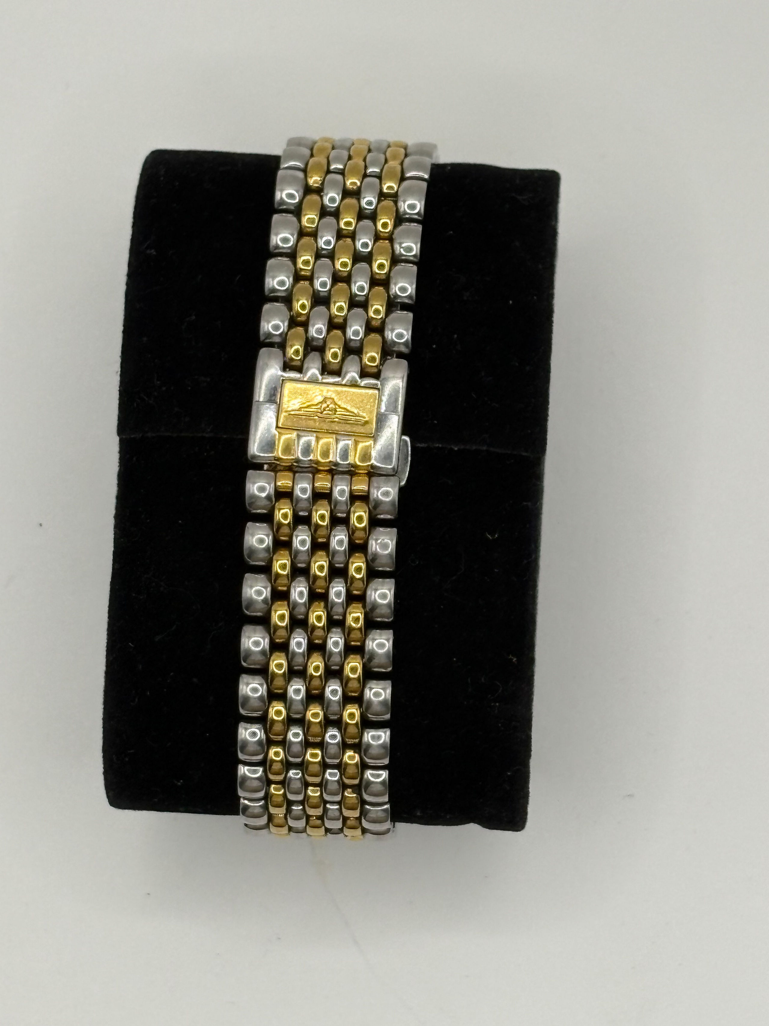 Bracelet en métal et métal doré à boucle déployante de la maison Longines.