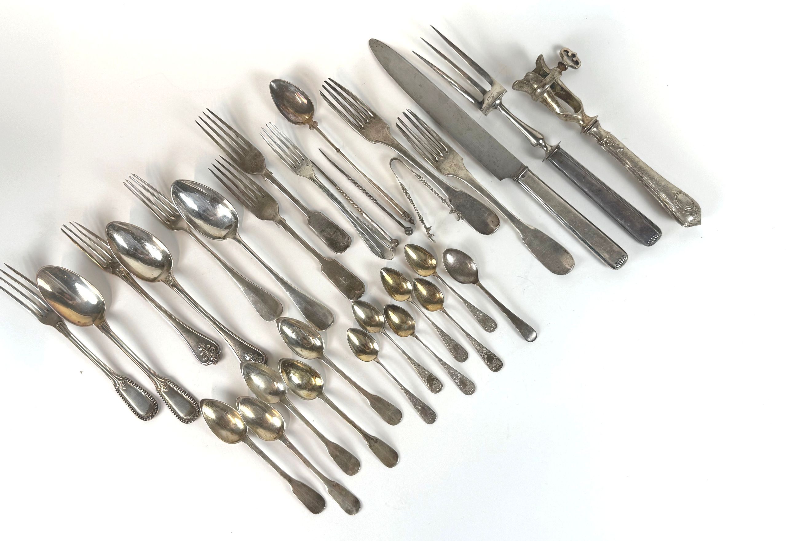 Trois couverts à entremets : L’un chiffré AD Fabricant orfèvre : Puiforcat, L’autre chiffré LB et le troisième gravé Marier Aubry