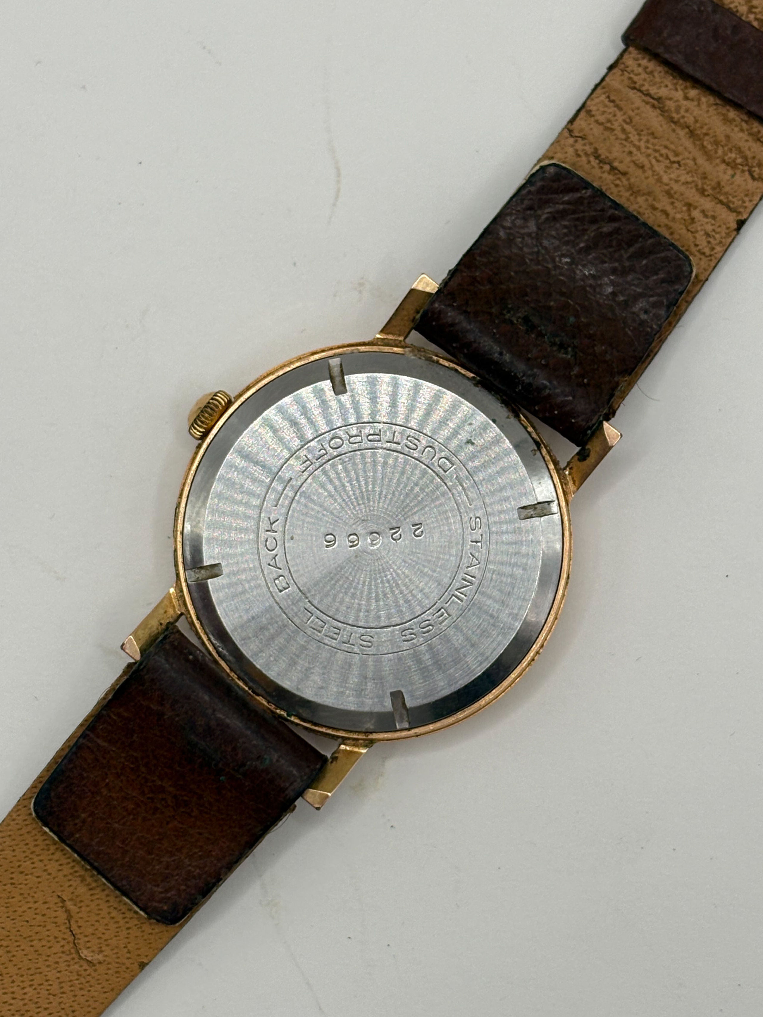 Montre bracelet, boîtier rond en métal, cadran à fond guilloché, chiffres arabes et index bâtons, trotteuse à 6h.