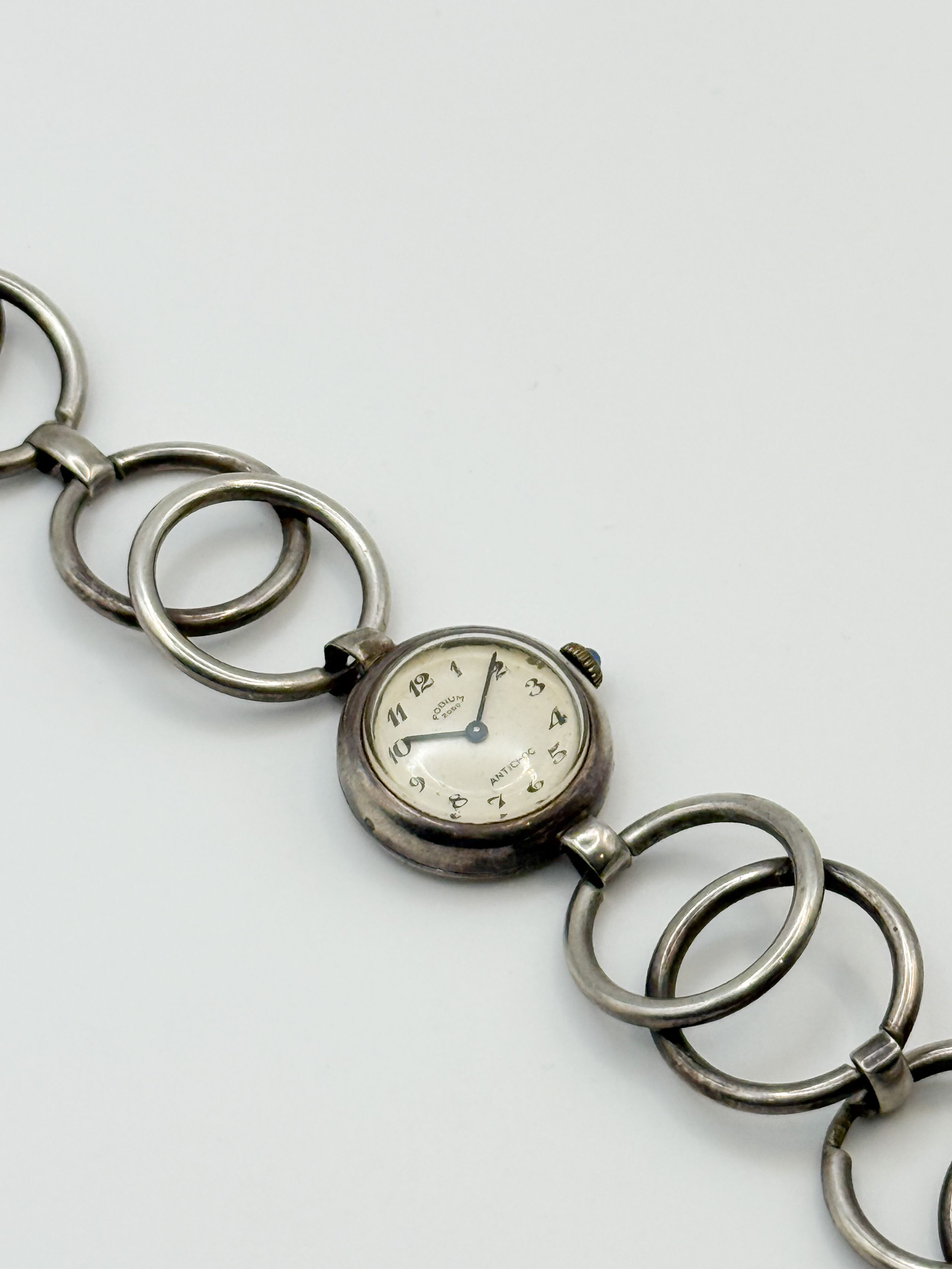 Montre bracelet à boitier rond en argent (800 millièmes).