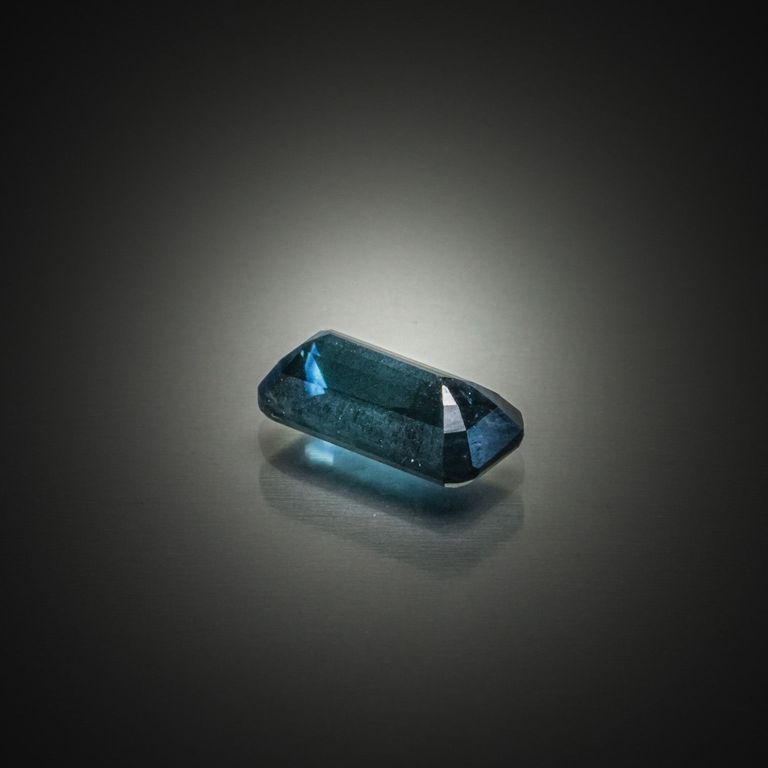 172 - Saphir rectangulaire à pans coupés sur papier.