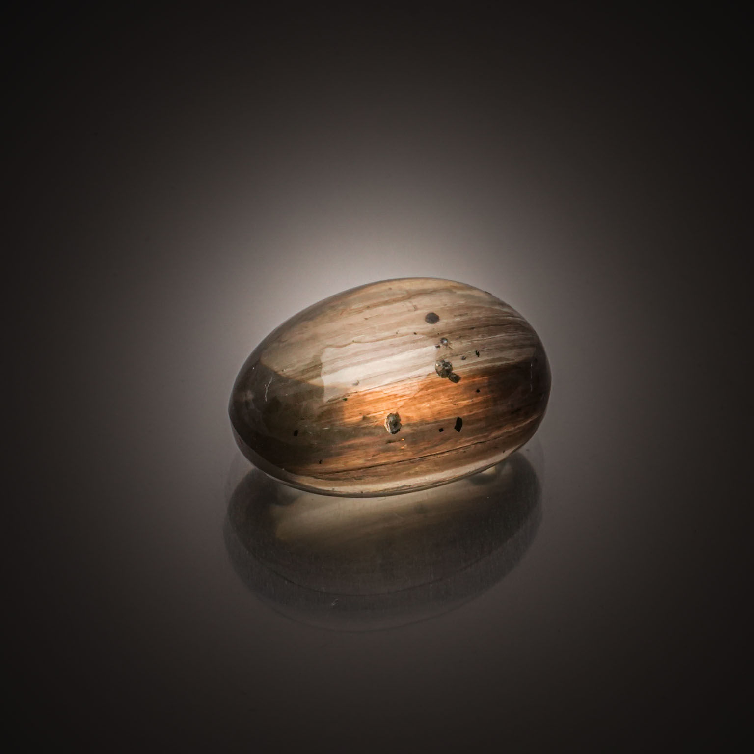 108 - Scapolite œil-de-chat ovale cabochon sur papier.
