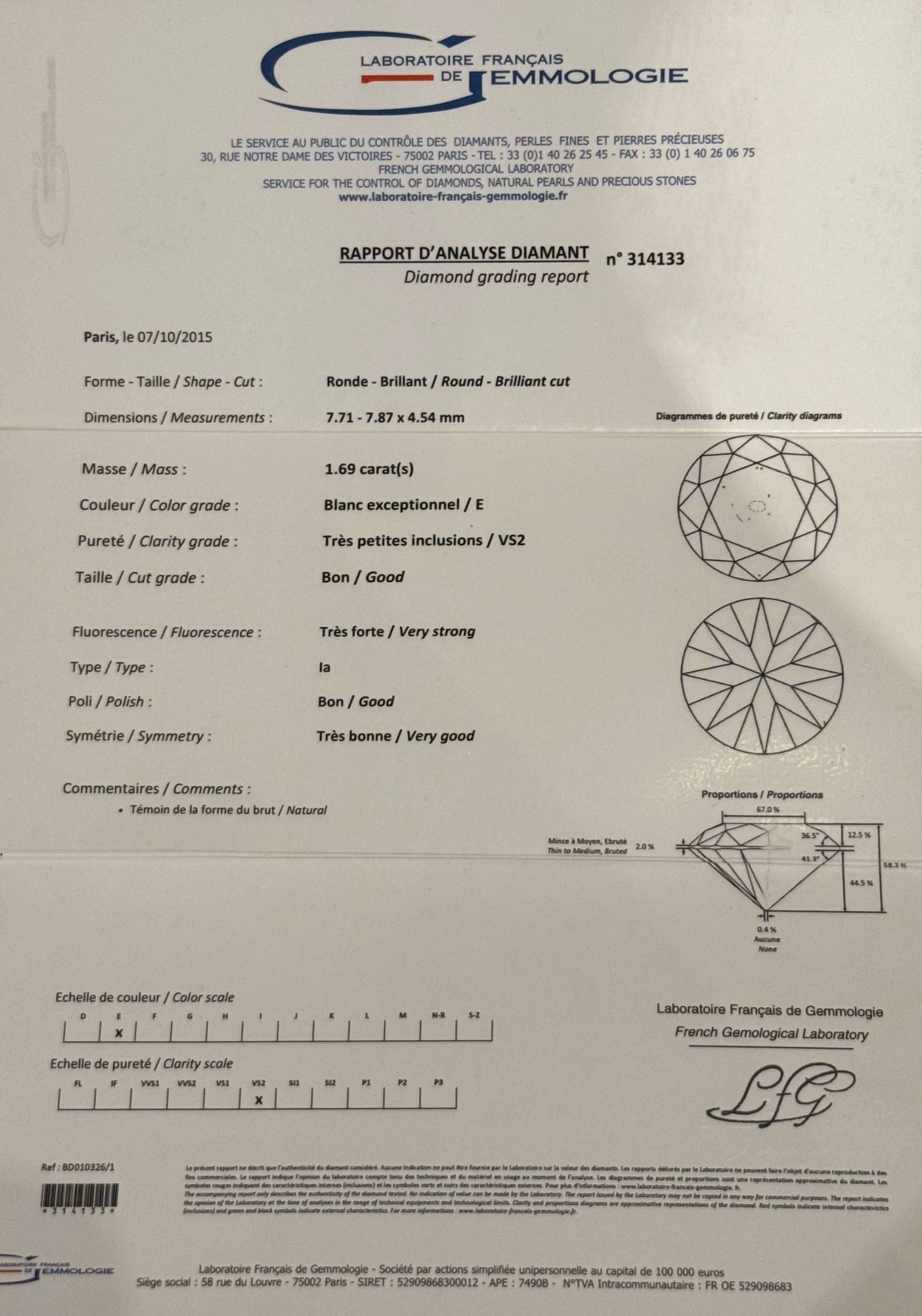 Accompagné d'un rapport d'analyse du Laboratoire français de gemmologie datant du 7 octobre 2015 indiquant :