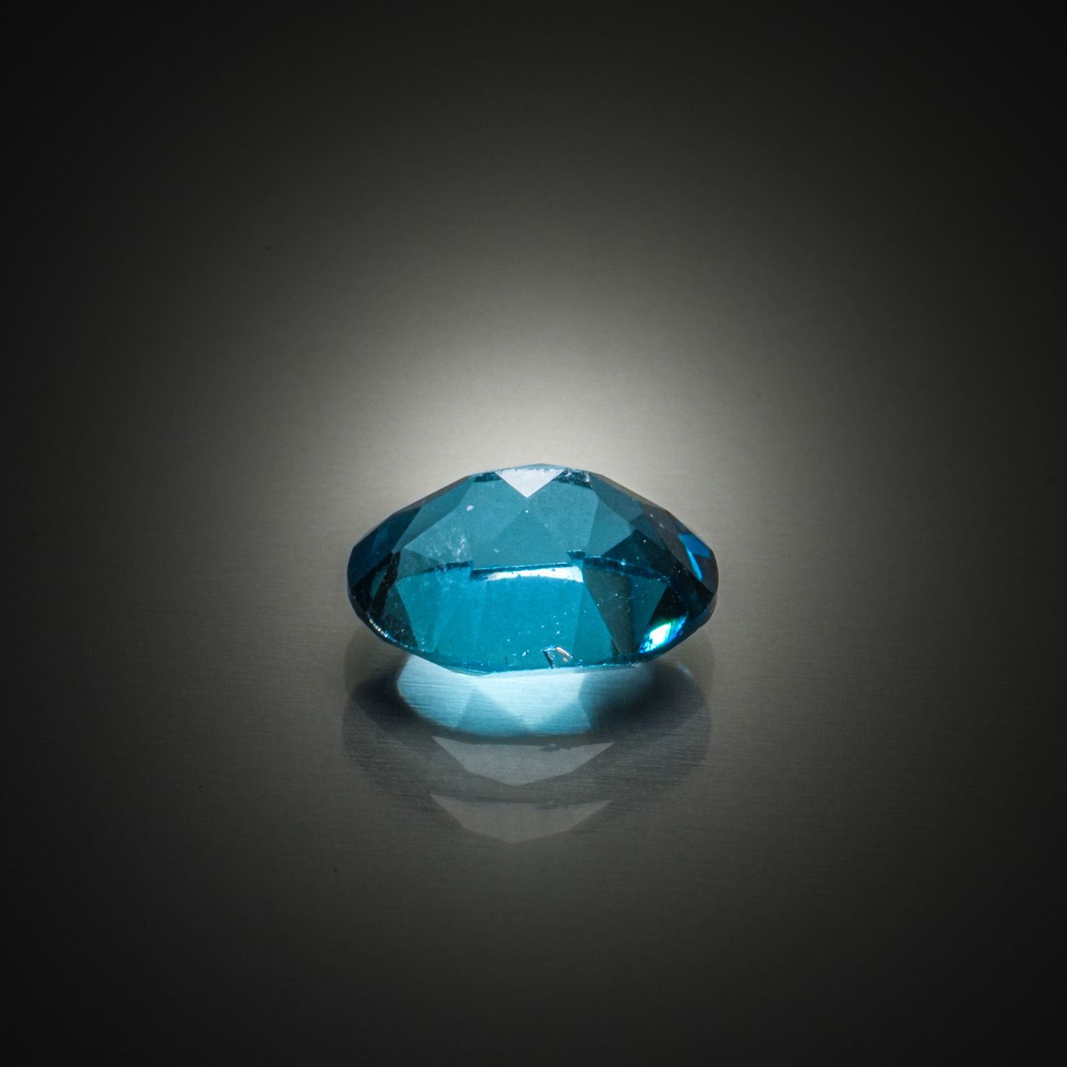 28 - Topaze bleue ronde facettée sur papier.