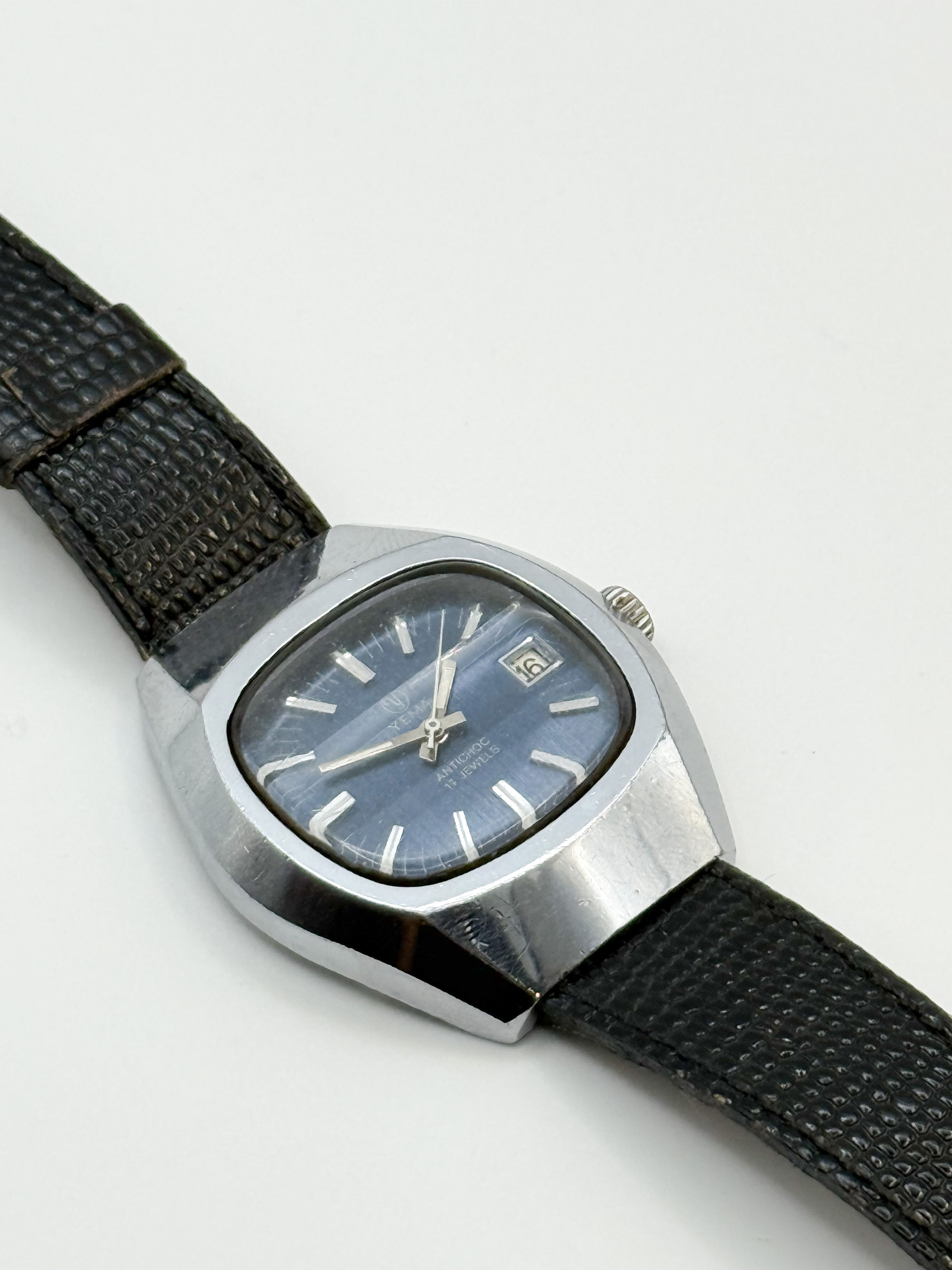 Cadran à fond bleu, index bâton.